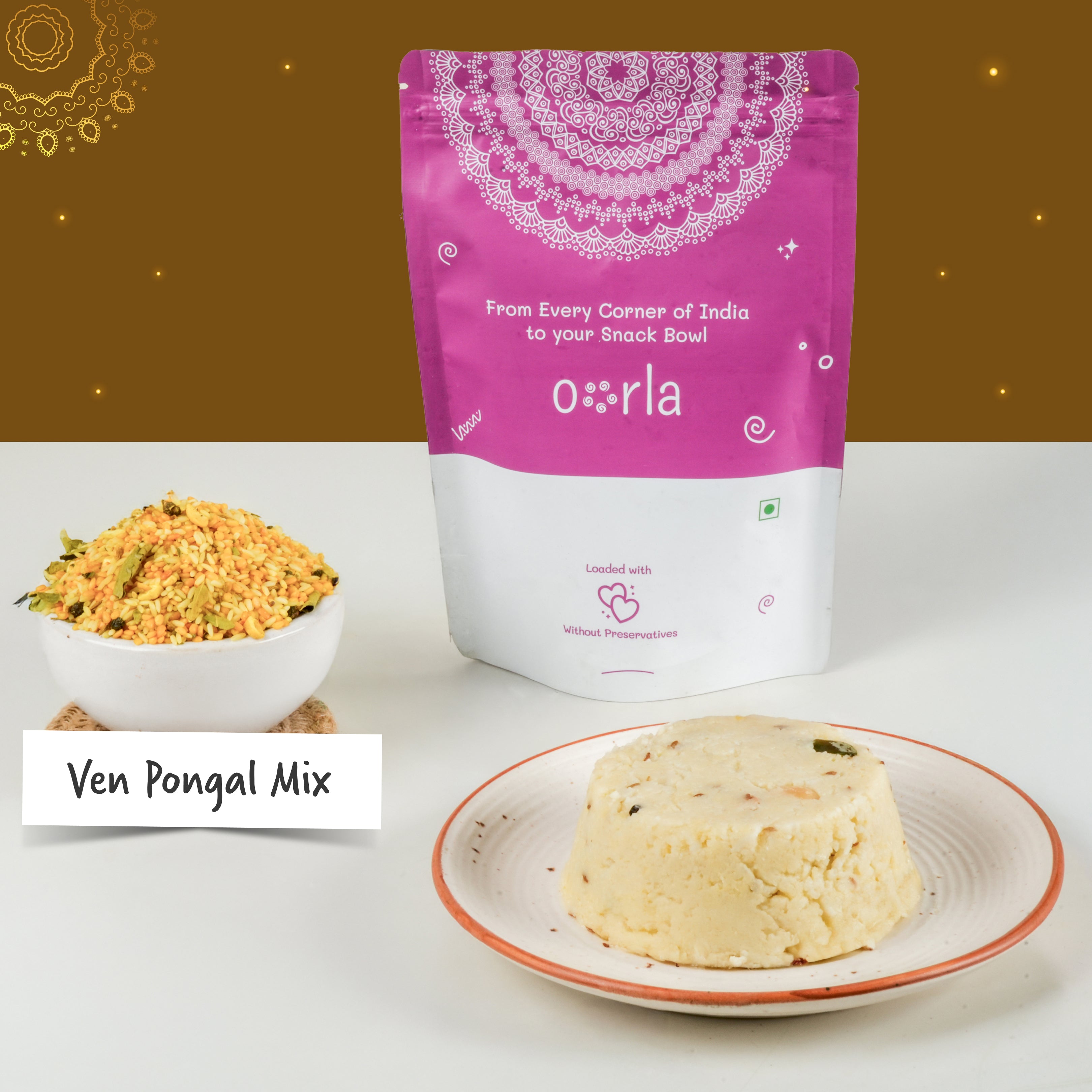 Wake up to South India’s breakfast bliss with Oorla’s Breakfast Mixes! This 7-item combo packs instant mixes & masalas: Sarkarai Pongal Mix, Ven Pongal Mix, Kanda Poha Mix, Vangi Bath Powder, Bisibele Bath Powder, Methi Pulao Masala,