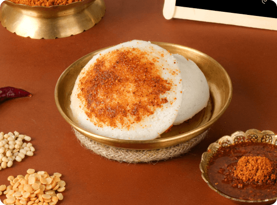 Turn soft idlis and crispy dosas into a feast with Karaikudi Idli Dosa Podi. Ground with fiery red chillies, dals, and spices, this podi adds the authentic Chettinad punch, best enjoyed with sesame oil or ghee.