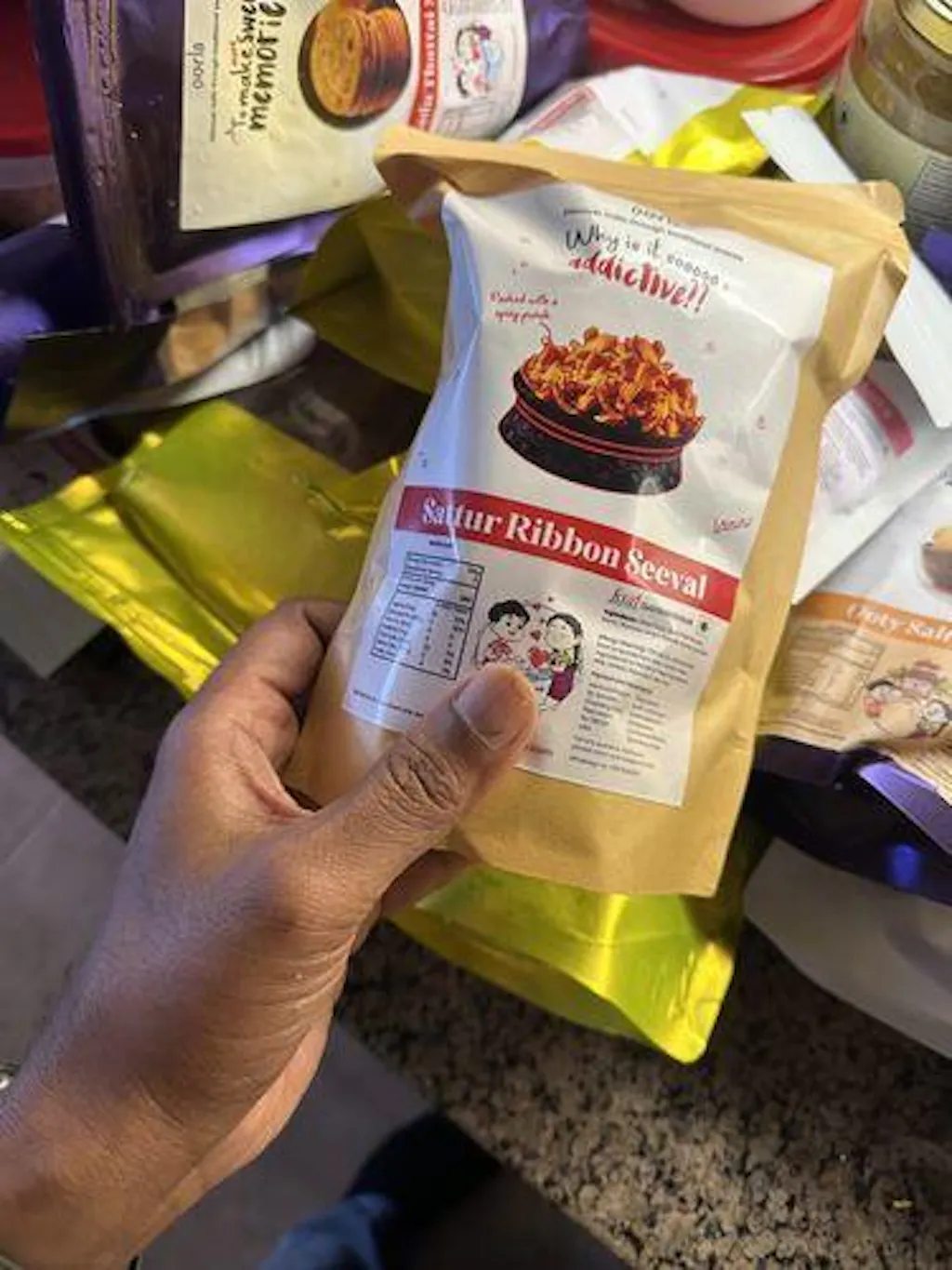 The secret behind the taste and crunchiness of Sattur Ribbon Seeval is that it is made in pure groundnut oil with fresh white butter being kneaded into the dough. We bring you this perfect snack to your doorstep that's recipe has been passed over for four generations to maintain the same exquisite taste.The right mix of spices is the key to Sattur Ribbon Seeval's absolute taste.